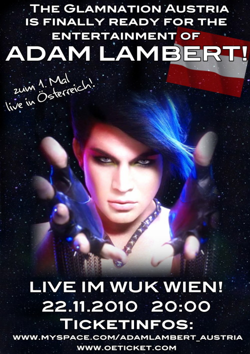 Ten osudný den D byl v pondělí 22.11.2010 a vyrazili jsme kolem půl třetí odpoledne autem na dlouhou cestu do Vídně. Když jsme před šestou hodinou dorazili, začal se hledat onen WuK (ten jejich vídeňský kulturhaus či co). No nakonec se našel, ale ty čísla na barácích mají spřeházené nějakým mě neznámým způsobem... Btw hledali jsme Währinger strasse 59. U pokladny jsem se naštěstí s rakušáky domluvila, tak jsem dostala své koupené lístky do ruky a šly jsme s moují kámoškou vystát řadu. Mimochodem, bylo SOLD OUT čili vyprodáno;-) Naštěstí nebyla zatím tak velká jak sjem předpokládala, lidí ale stále přibývalo. V 19h se mělo pouštět do sálu, ale ono furt nic! Foukal hnusný vítr a všem to ničilo jejich skvělé "adamovské" účesy. Překvapilo mě, že hodně lidí tam jde "jen tak", jakoby šli normálně do školy či do práce (průměrný věk lidí tam se pohyboval kolem 22 let). Byli oblečeni prostě úplně běžně! Naštěstí se tam našli i lidé co byli správně naladěni jak náladou tak oblečením a doplňky.